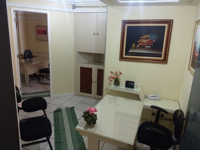TOTALMENTE MOBILIADA, porta de vidro na recepção, mesa de recepcionista, mesas de escritório com cadeiras excutivas, ar-condicionado nas duas salas, duas cadeiras para espera na recepção, frigobar, e armários nas salas e recepçao. Estrutura com cabeamento para circuito de câmaras de segurança. Edfício consta com elevadores, portaria e circuito de vigilância eletrônica.